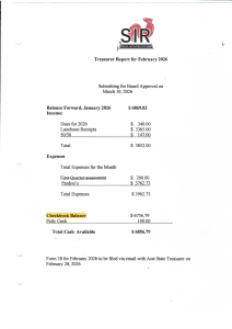 • Treasurers Report